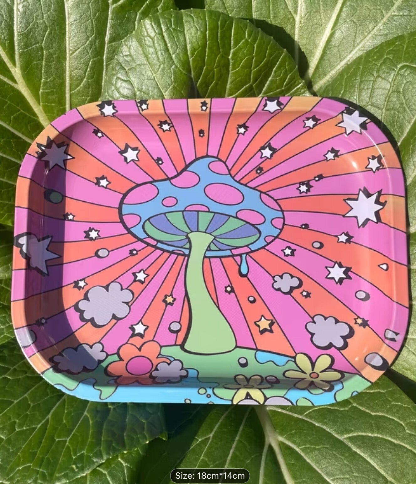 Tray with Psychedelic Mushroom Art Design.